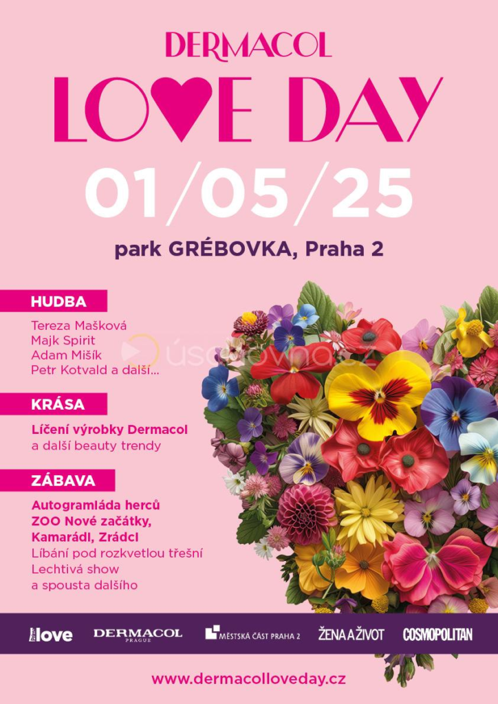 Rozkvetlá Grébovka v rámci sedmého ročníku DERMACOL LOVE DAY 1. května 2025 v 10–21 h nabídne nejzamilovanější prvomájovou akci s nadupaným kulturním programem a spoustou dalších aktivit. Oslavíme nejen 14. narozeniny kanálu Prima LOVE, ale užijete si navíc spoustu lásky a krásy i zábavu pro celou rodinu. Bohatý program bude věnovaný ženám, hýčkání a komplexní péči o tělo i mysl. Nezapomene ale samozřejmě ani na pány a ty nejmenší. Na dvou pódiích si užijete několik koncertních vystoupení a další zajímavý program na různých stanovištích po celém parku. Nebude samozřejmě chybět ani dobré jídlo a pití. Výběr z programu: PRIMA LOVE STAGE (Moderují Eva Hecko Perkausová a Roman Šebrle) 10:00 Zahájení akce 11:00 Koncert Jana Rychterová 13:30 Koncert Simon Opp s kytarou 14:00 Rozkrojení dortu k narozeninám Prima LOVE se zástupci a herci TV Prima 15:00 Koncert Bon Art Junior Fest (Viktorie Martincová a Viktorie Molcarová) 17:00 Koncert Majk Spirit 19:00 Koncert Petr Kotvald 20:00 Show MEN4QUEEN PROGRAM prima+ STAGE (Moderuje Eva Decastelo) 11:00 Zahájení akce 12:30 Koncert Tereza Mašková 13:30 Koncert Jana Rychterová 14:30 Pozdrav herců ze seriálů ZOO/Kamarádi/Zrádci 15:00 Koncert Šimon Opp s kapelou 18:00 Koncert Adam Mišík Program na pódiích doplní Beauty talky například s Ivou Kubelkovou a dalšími osobnostmi a Trendy líčení by Dermacol, módní přehlídky, taneční vystoupení skupin Papaya sunrice (Orel Dobříš) a The Mess. Přijde nás pozdravit Lucie Pechová, místostarostka MČ Praha 2. PRIMA LOVE ZONE přinese Outdoorové dabingové studio, Zážitkovou 360° kameru, rozmanité fotokoutky, lakování nehtů, líbací strom, strom přání a prodej Prima LOVE dárečků. PRIMA LOVE STEZKA nabídne další dárky pro vás – najděte v parku Grébovka 10 míst, splňte 10 úkolů a získáte krásnou odměnu. DERMACOL BEAUTY ZONE vás bude hýčkat – čeká vás líčení rtěnkou 16H LIP COLOUR, líčení a prodej produktů DERMACOL, Dermacol Plummy a Bubble monster pro nejmenší s maskotem, pánské zakázané uvolnění a vanilkové nebe. Na dalších stanovištích si užijete také spoustu zábavy, jako budou: alchymistická show; autogramiáda herců z pořadů Kamarádi, ZOO Nové začátky, Zrádci – Anastasia Trmal Chocholatá, Regina Řandová, Petr Švancara, Ondřej Kubina, Michaela Pecháčková, Johana Nováčková, Šimon Bilina, Šimon Opp, Michaela Tomešová, Denisa Nesvačilová, Johny, Nicole od 15 hodin u prima+ stage; Baagl – dětská zóna; Braun – barber služby a konzultace s dermatoložkou; COSTA COFFEE s výbornou kávou; Danone – ochutnávky; FIAT – testovací jízdy; Globus – školička vaření pro děti; Instax – hostesky nabídnou match test a zjistíte, jak se k sobě hodíte; Kolorky – přebalovací zóna pro vaše nejmenší; Lindex – Love styling; Piki – pikniková zóna s hudbou; TEPfactor s 10 úkoly hry na motivy pevnosti Boyard; Žena a život – astrologická věštba. I letos bude mít akce charitativní přesah v podobě představení aktivit organizací Fuck Cancer – edukace a prevence a Nedoklubko z. s. Vstup na DERMACOL LOVE DAY je tradičně pro všechny návštěvníky zdarma. Ale opět máme pro vás speciální tašku Dermacol plnou dárků, kterou je možné zakoupit za pouhých 349 Kč, a díky ní i možnost nechat se nalíčit, nalakovat si nehty, a navíc si odnést skvostné dárky v hodnotě přes 1 000 Kč! Dárkový balíček obsahuje pět jedinečných kosmetických produktů, prestižní a zajímavé časopisy nebo měsíční voucher na prima+ Premium bez reklam. Tašku můžete zakoupit v sítích Ticketportal nebo GoOut. Slevomat zase nabízí tašku na výběr s dárky navíc – zábavné rodinné hry Vychytávky Ládi Hrušky nebo jedinečné a ekologické prací papírky Ecohaus. Akci pořádá skupina Prima. Titulárním partnerem DERMACOL LOVE DAY je společnost DERMACOL. Hlavním mediálním partnerem akce je mediální skupina Mafra s časopisy Žena a život a Cosmopolitan. Spolupořadatelem akce je Městská část Praha 2. Zdroj: DERMACOL