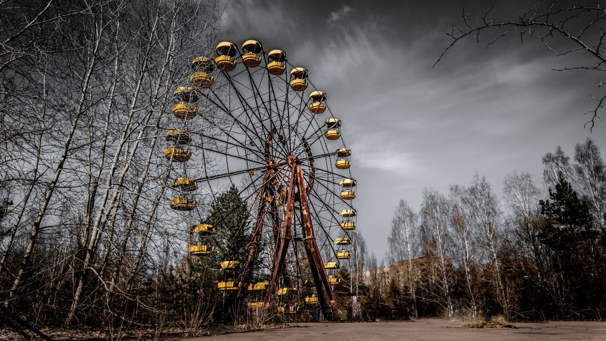 Nově vzniklá elektrárna a přilehlé město mělo být symbolem modernosti a pokroku. V časných ranních hodinách v sobotu 26. dubna 1986 však došlo během technické zkoušky v černobylské jaderné elektrárně na severu Ukrajiny k abnormálnímu vzrůstu výkonu a následnému prudkému zvýšení tlaku páry v jaderném reaktoru typu RBMK-1000 ve čtvrtém bloku elektrárny. V 1.23 hodin moskevského času odhodila mohutná parní exploze víko reaktoru a vyústila v požár, sérii dalších explozí a roztavení reaktoru. Aktivní zóna reaktoru a související bezpečnostní systémy byly okamžitě zničeny nebo těžce poškozeny. Okolí reaktoru bylo kontaminováno radioaktivními úlomky grafitu a palivových tyčí…