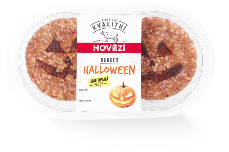 Na grilu, v troubě i na pánvi ožije Hovězí burger Halloween 220 g, který pobaví svým strašidelným obličejem malé i velké strávníky. Pro opravdové požitkáře je pak připraven Hovězí burger Mummy 220 g obalený proužky slaniny, která výslednému burgeru dodá nejen další vrstvu chuti, ale také lahodnou křupavost.