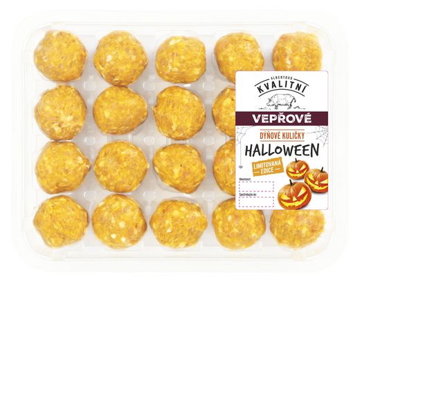 Originálním zpestřením slavnostního stolu budou také Vepřové dýňové kuličky Halloween 300 g, které kombinují sezónní surovinu s jemně kořeněným masem. Servírujte je k večeři nebo na hallowenském večírku jako drobné pohoštění, kde je můžete doplnit i dipem k namáčení.