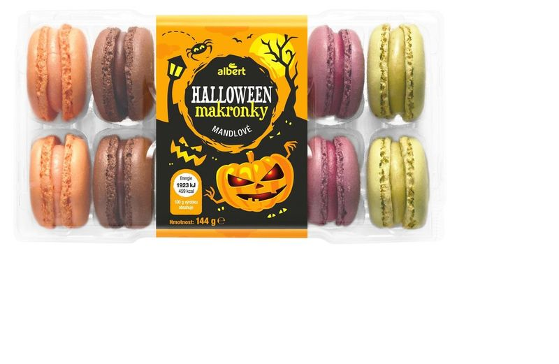 Po vynikající večeři nesmí chybět sladká tečka. Vyzkoušet můžete Halloween Makronky mandlové 144 g v tematických podzimních barvách. Díky stylovému balení poslouží skvěle i jako drobná pozornost či jako odměna pro vaše nejoblíbenější koledníky.