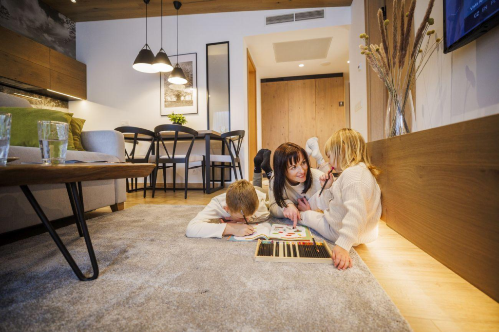 Letos poprvé zažijí plnou letní sezonu i Vista Apartments, tři nové domy s apartmány pro rodiny, páry i partu přátel. Ubytování je plně samoobslužné, pohodlně dostupné a jen pár kroků od lanovky. Každý apartmán má vybavenou kuchyň, balkon a přístup k dětské herně, kolárně i garážovému stání. Je to ideální místo, odkud ráno vyrazíte rovnou za zážitky – ať už do Trail Parku, k Mamutíkovým dětským parkům, na Stezku v oblacích, visutý most Sky Bridge 721 nebo za dobrým jídlem do některé z místních restaurací.