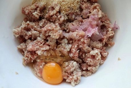 1. Mleté maso osolte a opepřete. Přidejte jedno vejce, strouhanku a najemno nastrouhanou cibuli. Přidejte i najemno nasekanou čerstvou petrželku a masovou směs dobře promíchejte. Z vypracované směsi vytvarujte 20 masových kuliček.